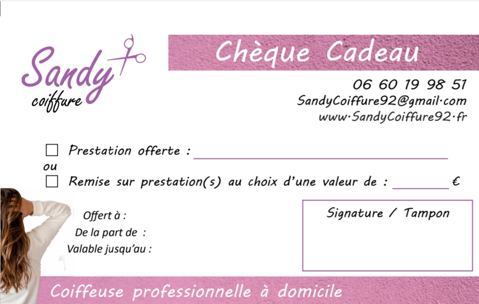 Toutes les occasions sont bonnes avec les chèques cadeaux de Sandy, n'hésitez pas à me contacter...